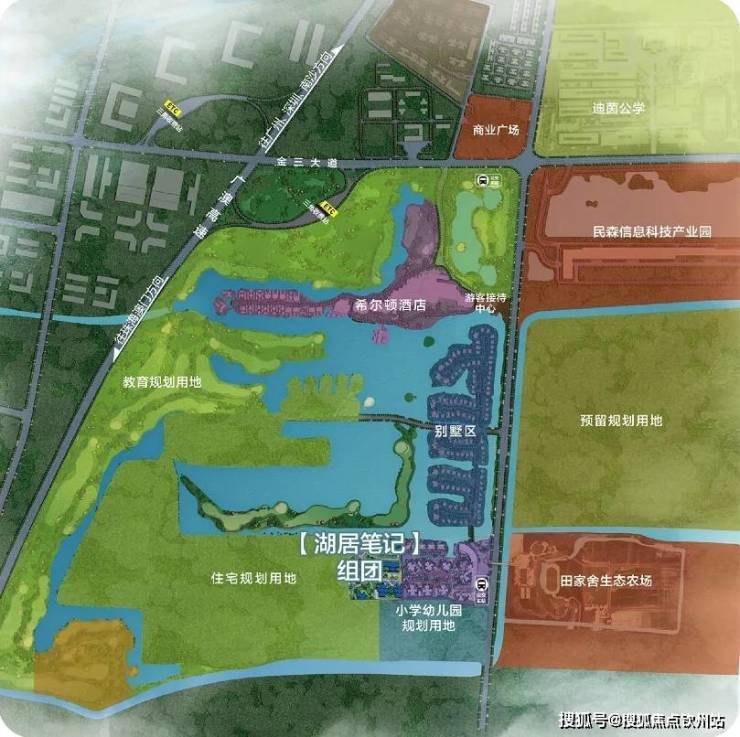 项目占地3500亩,配套有千亩迪茵湖、200亩田家舍生态农场、希尔顿五星级酒店、民森信息科技产业园、大学城规划等10大旗舰式配套。现项目在售产品涵盖了洋房、别墅及商铺,