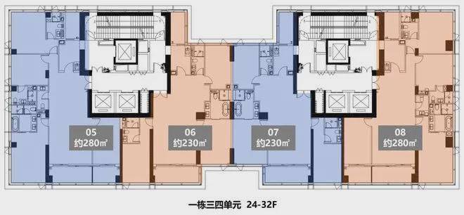 • 几梯几户:一期一二单元6-32层为3梯2户,33-38层为3梯1户;三四单元6-22层为3梯2户,24-32层为3梯2户,33-38层为3梯1户。二期17-43层一层6户,45-57层一层4户。