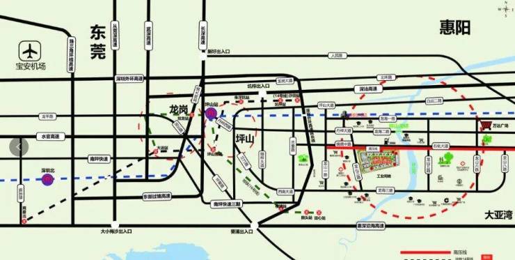 临石化大道深惠交通枢纽3公里即达深圳坪山新区,半小时双城生活体验;