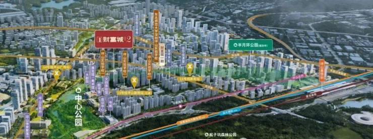 半月环公园(规划中):约48万㎡活力绿洲,链接城市繁华与自然纽带,财富城二期矗立半月环公园头排,将公园美景纳入塔尖居住视野,尽显“曼哈顿中央公园”式享受。