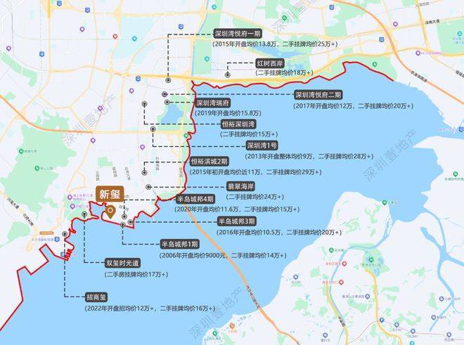 ▲深圳湾豪宅线示意图,挂牌均价为7月,来自贝壳找房