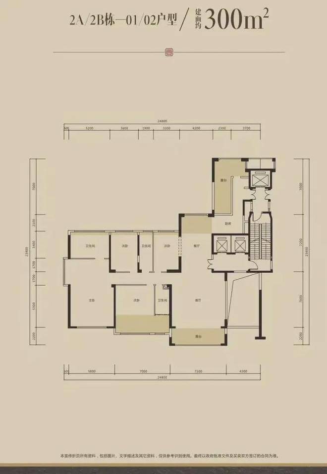 300平米4+1房2厅5卫户型;