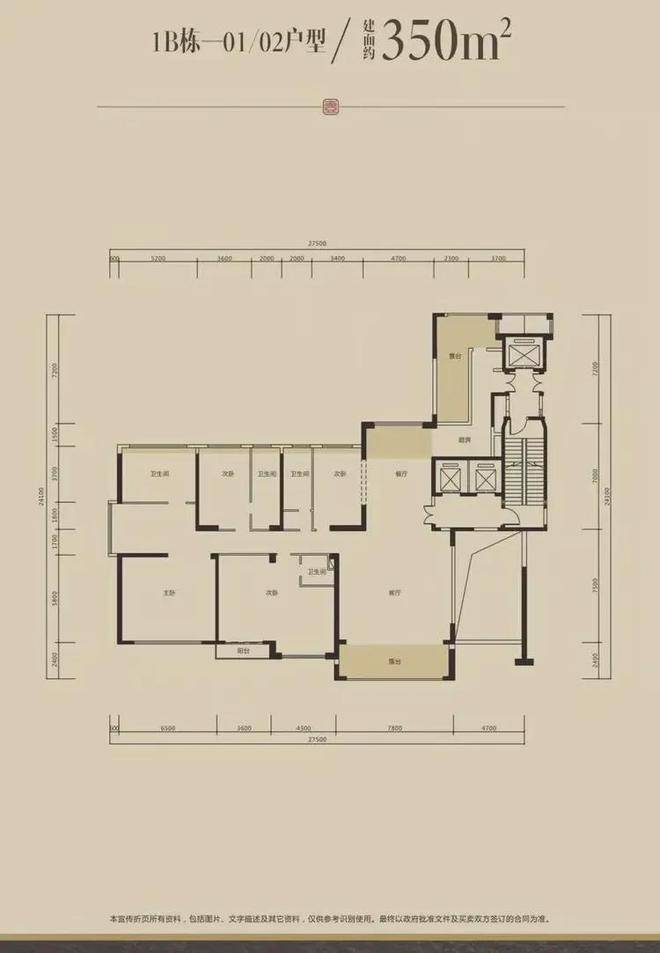 350平米5+1房2厅6卫户型;