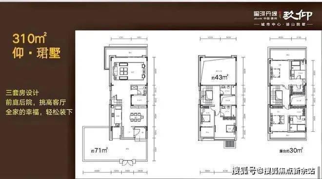 242双拼合院:位置在湖心岛,产品稀缺共28套,下沉式庭院隐私性好,使用面积780平,买三层享五层,五层全采光设计