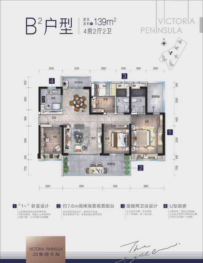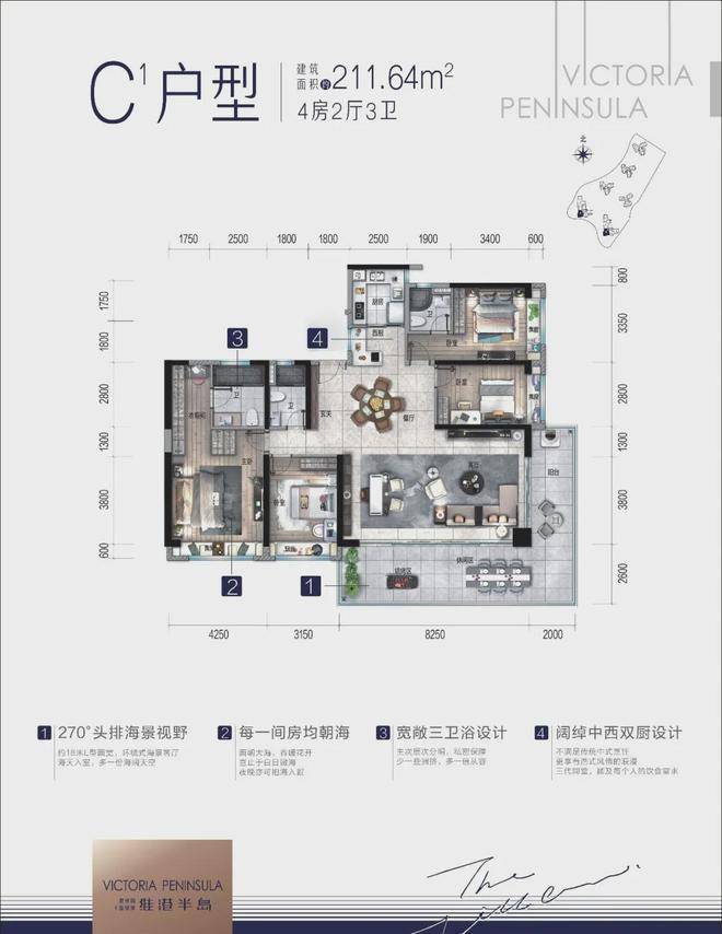 维港半岛整体设计风格为简洁、大气的现代主义滨海风格,干净简洁建筑语言最大化突出自然环境,建筑与自然关系是互融互透而非对立对抗。呈现别具一格的瞰海景观优势,产品结合山势台地错台布置,最大限度的为每一栋产品提供更多的瞰海景观。