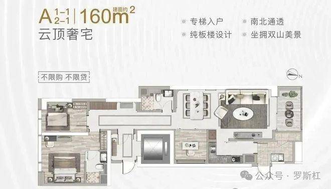 A座:建筑面积约160-220㎡2-3房(南北通透,专梯入户)