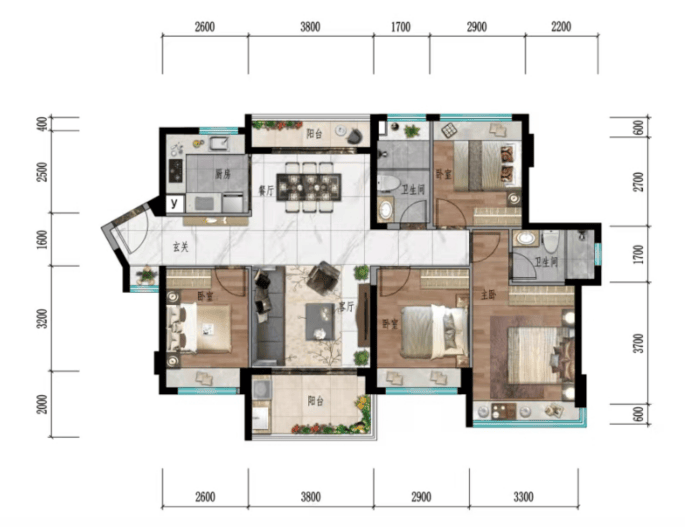 『格局方正 双联景观阳台』:131户型 四房两厅两卫