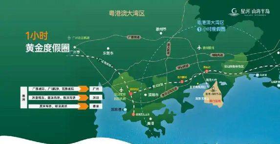 在交通方面,星河山海半岛别墅尽享“四高速、一高铁、一机场”的三维立体交通网络 ,轻松融入大湾区1.5小时黄金度假圈。项目距离高速出口仅6KM ,3分钟即可上高速,1.5小时直达深圳中心;30分钟可至惠州平潭机场,45条航线飞抵全国;1.5小时可达深圳宝安机场,30条航线飞至全球 ;18分钟可达厦深高铁惠东站,45分钟达厦深高铁惠州南站(建设中) ;未来还规划有广惠高速延长线,项目内设有高速出口 ,以及在建的广汕高铁,更有规划中的海上航线,实现海、陆、空全线通航。便捷的交通,不仅让业主能够快速抵达城市的繁华中心,还能随时开启一场说走就走的旅行,畅享便捷、高效的大湾区生活。