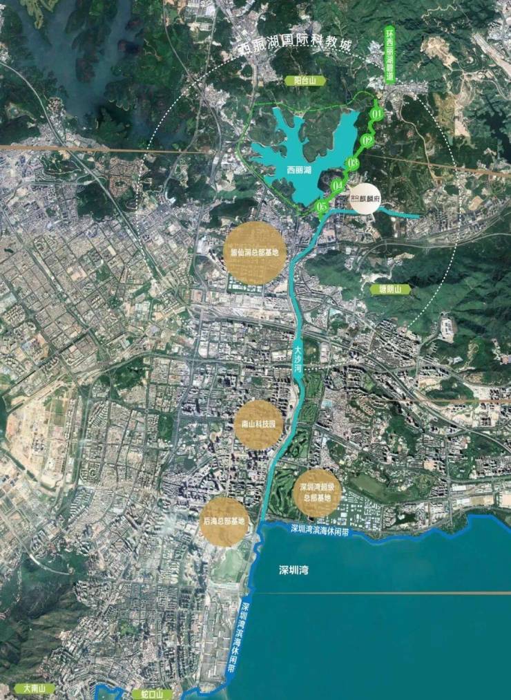 位于西丽湖国际科教城核心,大沙河创新走廊起源地,承载深圳科技创新使命。