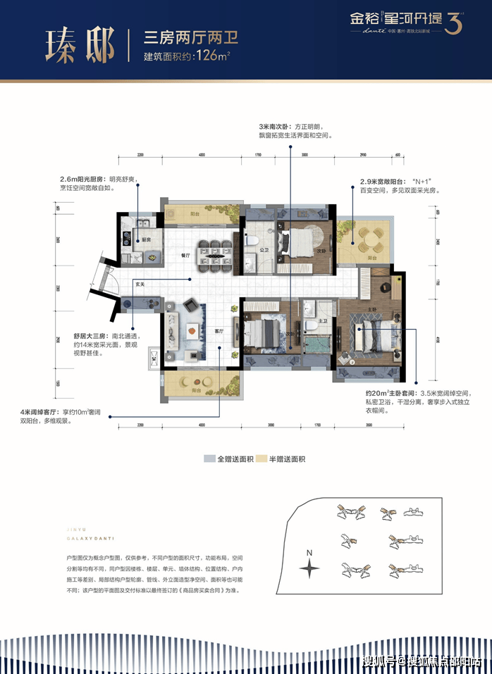 建面约126㎡户型3+1房 2厅2卫