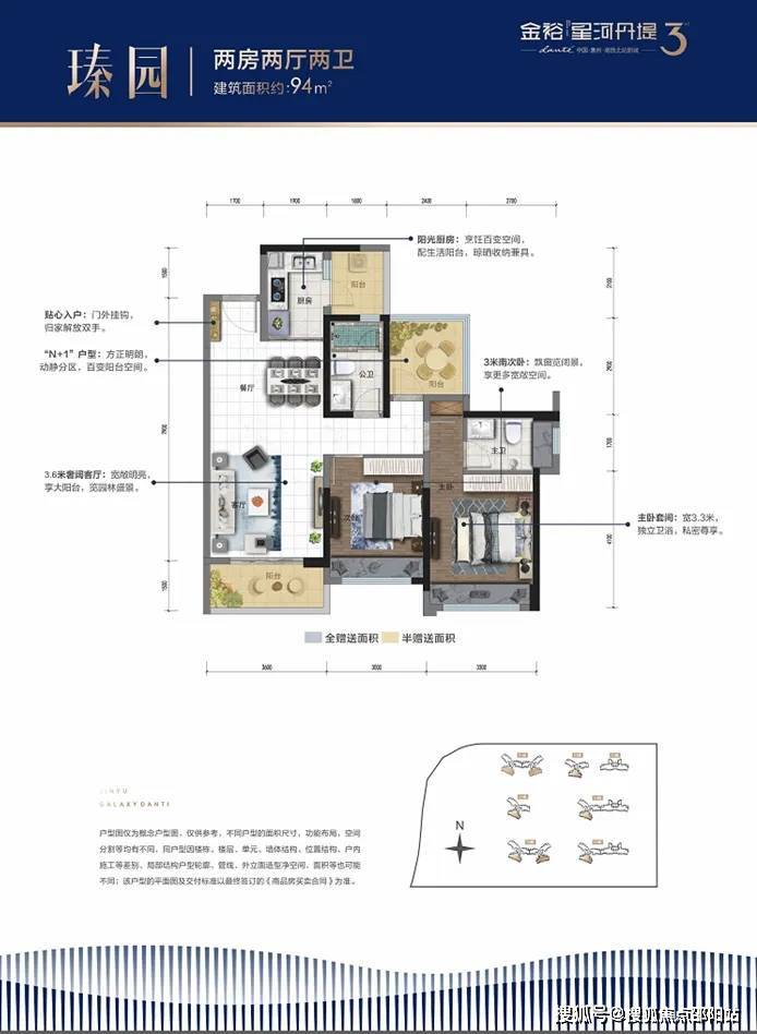 建面约94㎡户型2+1房 2厅2卫
