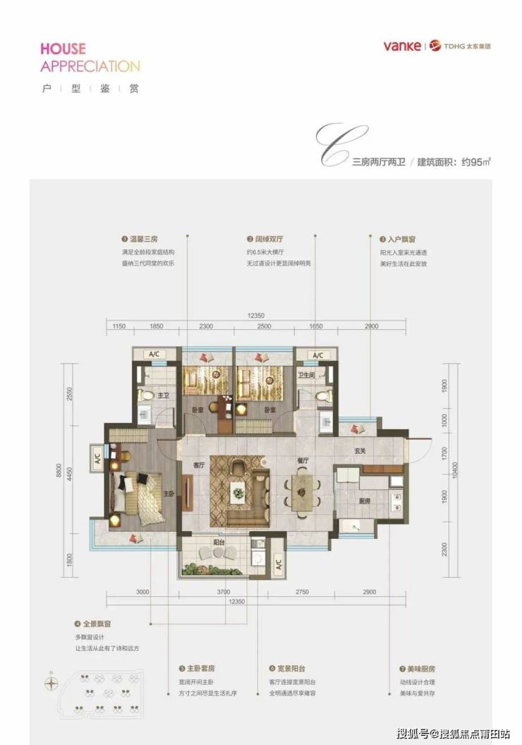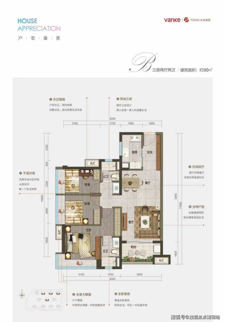 万科匠心打造的高品质住宅令买家心动,尤其是建面约75平方米的主力户型,为刚需家庭优选。三房全飘窗设计,空间利用率高。