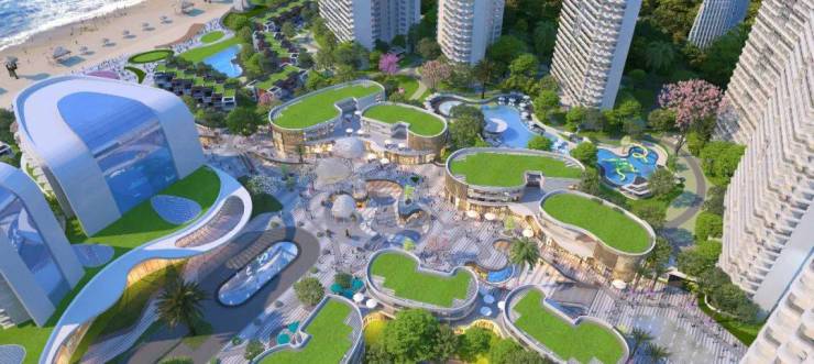 约8500㎡商业综合体,由7栋商业体和8360㎡商业服务配套组成,双月湾度假区独创的亲海集中式商业街。