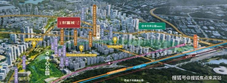 ·半月环公园(规划中):约48万㎡活力绿洲,链接城市繁华与自然纽带,财富城二期矗立半月环公园头排,将公园美景纳入塔尖居住视野,尽显“曼哈顿中央公园”式享受。