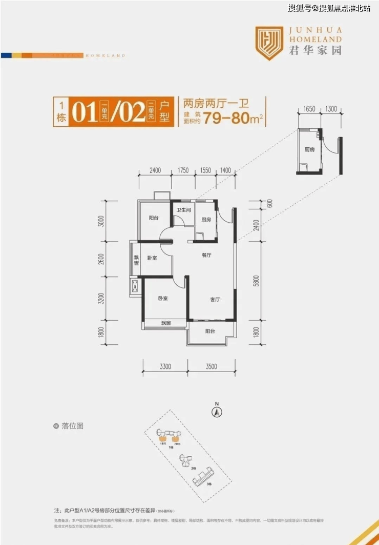 最后,我们首推的户型是79-80㎡的两房两厅一卫。