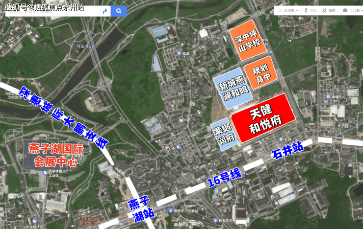 天健和悦府:位于坪山区石井街道金田路与绿荫南路交汇处西北侧,项目地处燕子湖片区,西北部为燕子岭公园,坪山河自西向东贯穿而过,区内汇聚了山、水、田、林、湖、草等多要素,得天独厚“看山、见田、拥河、揽湖”的生态优势是深圳市独一无二的生态资源,片区西侧的深圳坪山燕子湖国际会展中心,与深圳国际会展中心,深圳会展中心也是形成了一城三馆的格局。 天健和悦府_售楼处_Vip Tel:400-013-9098中介勿扰