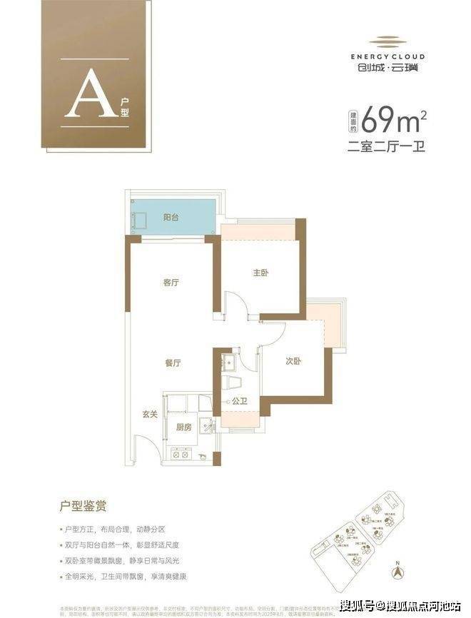建面约69㎡舒适2房2厅1卫,全明采光,双卧室带瞰景飘窗,多维收纳空间,让收纳无忧。