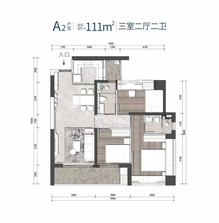 A户型 建筑面积约109-111㎡ 3房2厅2卫