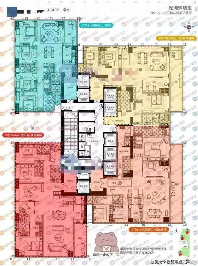 低区(5-41层):209-304㎡四房,适合科技新贵家庭;