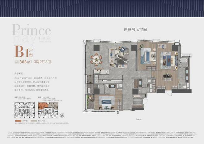 大平面大尺度定位,全户型纵享环幕视野。项目打造主力建面约308-415㎡纯粹品质公寓共191席,顶层为建面约1280㎡公寓产品。