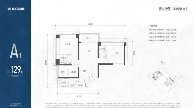 A1有两条腿,分别1-1栋01/02,主朝向是西北向,双龙抱珠格局。