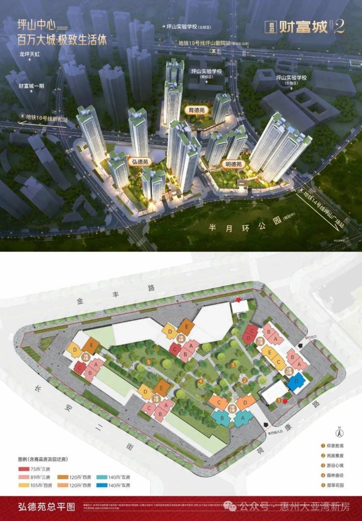 深圳 坪山深财富城二期在售:建筑面积75-89-105-120-140㎡户型,3梯5户,52-54层为主,户型使用率82-85%,简单装修交付,刚需三件套,地铁+学校+商业都有,