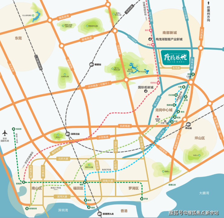 30分钟内可达坪山高铁站、东莞南站、龙岗中心城。1小时内直达罗湖京基100、福田平安金融中心、南山华润大厦。