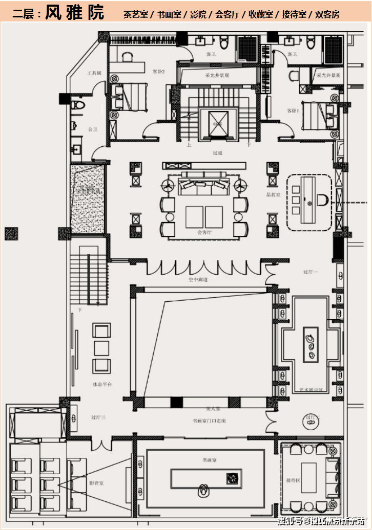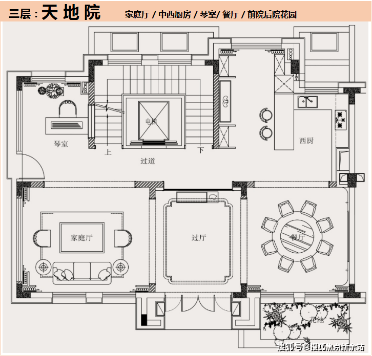 汲取四合院与客家围屋建筑精髓,打造空中四合院、下沉式私家庭院,地上3层住家,下沉2层做会所;