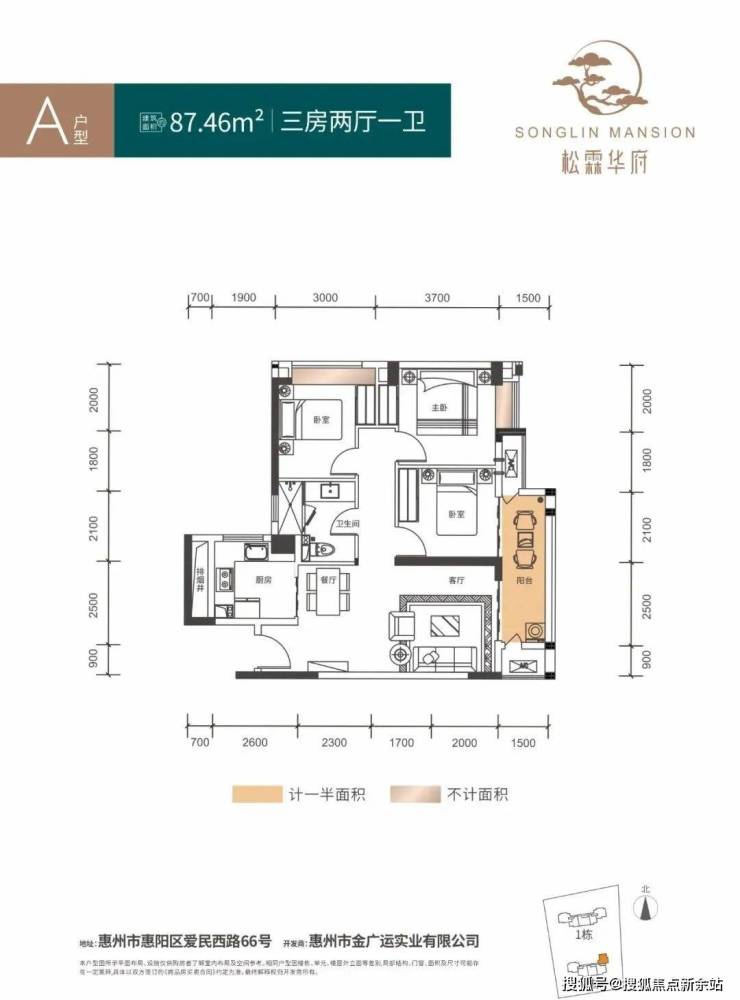 松霖华府位于惠州市惠阳爱民西路66号,沿爱民西路、兴湖路500m距离即是惠阳城市主干道——白云大道,从白云大道无缝连接深圳坪山大道。开车15分钟即可到达深圳地铁14号线坪山沙田站,约50分钟可快速到达深圳各主要区域。项目总占地约8950㎡,总建面约4.5万㎡,容积率3.5,绿化率30%,目前规划有2栋高层住宅及商业,社区内将打造“新中式风情”园林、全龄段架空层、健身区、休闲凉亭等配套。项目周边集商业、教育、医疗、生态于一体——周边三公里商圈环伺(铂金广场、沃尔玛、天虹超市、家乐福、诚杰壹中心等醇熟商业圈),吃喝玩乐购举步即达,尽展都市繁华,悦享受潮流前线;项目周边教育可谓是名校云集,群星幼儿园、群星小学就在家门口,与省一级学校惠阳中山中学仅一墙之隔,另外惠阳区太阳岛中英文学校、土湖小学、东王实验学校、西区第二小学、淡水中心小学(市一级)、惠阳第四中学(市一级)、惠阳第一中学(省一级)、崇雅中学(省一级)等名校在旁,从幼儿园、小学到高中都可近距离上学,高知为伴,迁善而居,润泽孩子的人文气质;十分钟迅速通达三家医院(南湖门诊部、惠阳三和医院、惠阳区中医院、惠民医院的医疗资源),为爱保驾护航;毗邻约33万㎡原生态坪山河湿地公园,坐拥城市绿肺,实现理想人居。松霖华府 ·户型鉴赏