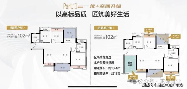 102/105㎡四房两卫:横厅设计+三玻四腔隔音窗,折后96万起,次卧面宽达3.3米,告别紧凑感;