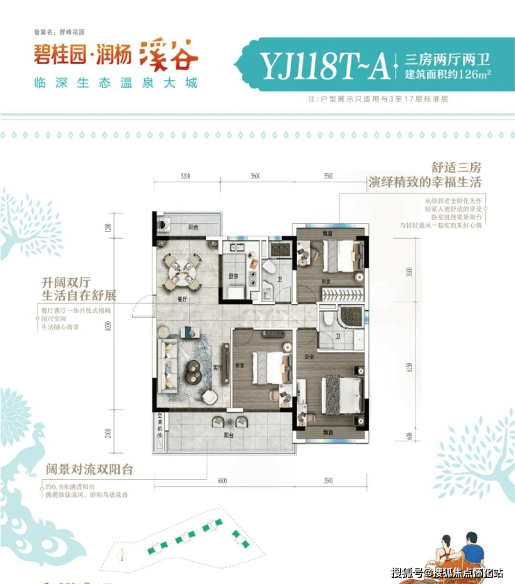 目前,碧桂园润杨溪谷鸣涧组团正在热销,建面约118-126㎡的小高层,精装交付,相当难得。