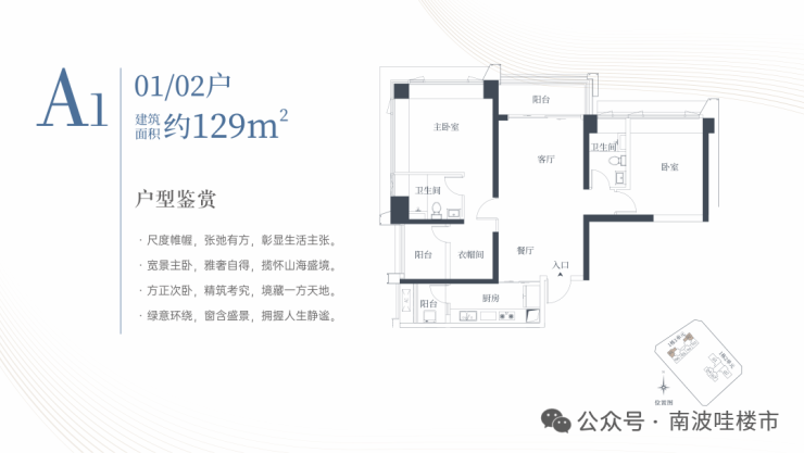 🔹1栋一单元A1、A2户型:面积约为129㎡