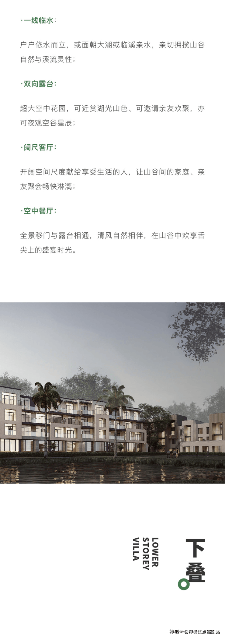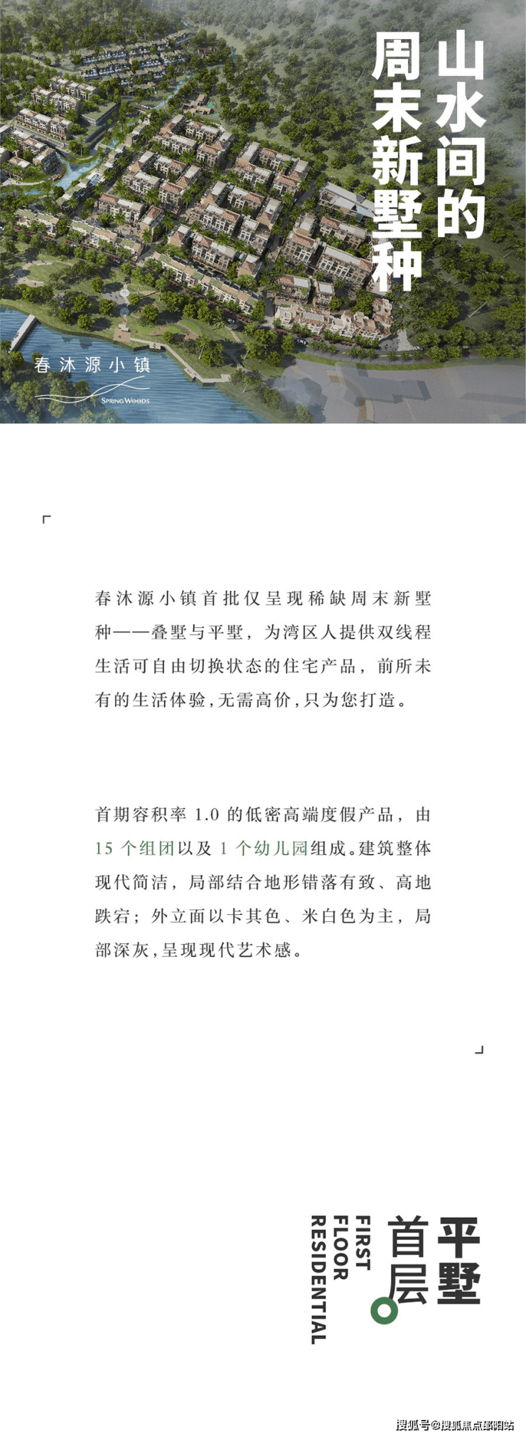 项目定位湾区首个深度休闲度假首选目的地,以“一个人的精神湾区”为规划理念,利用美学营造乌托邦式社群化群居度假生活山谷。项目总建筑面积120万㎡,容积率1.0,绿地率30%,沿河坡地展开,以弯区稀缺产品叠墅与平墅为主,建筑立面现代简洁,色调以卡其色、米白色为主,点缀深灰,呈现当代艺术感,布局结合地形,错落有致、高低跌宕。小镇内部规划酒店、餐饮、文化、儿童与休闲娱乐等多元化功能业态,为湾区人提供“城市-山谷”双线程自由切换的生活体验。