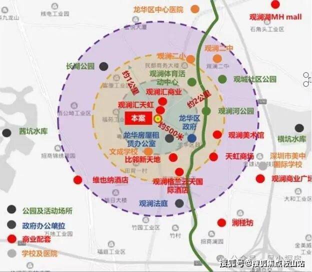 配建公立幼儿园,片区12所公立学校环绕,观澜二中、观澜二小、龙华第三外国语等学府环伺;