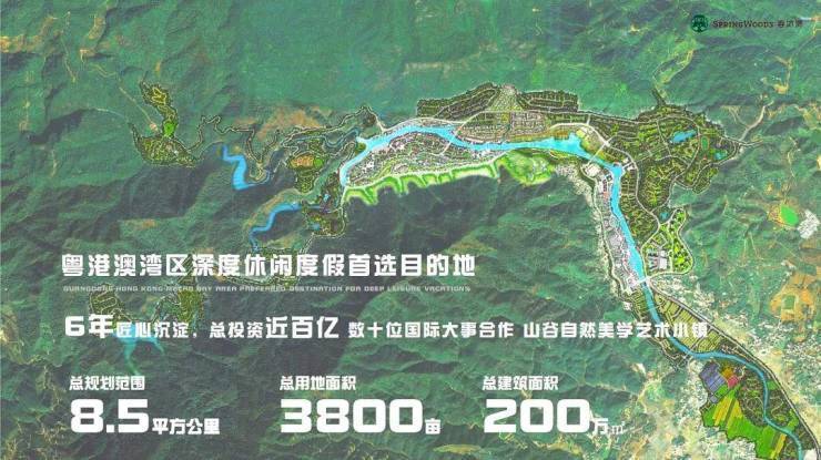 春沐源小镇位于广东省河源市源城区,临近万绿湖风景区,项目总规划范围8.5平方公里,总用地面积3800亩,总建筑面积120万㎡,6年匠心打造,总投资额近200亿元。项目遴选全球团队并实现全大师班底操刀,以“一个人的精神湾区”规划理念串联“精神建筑群、亲水游憩带、精品酒店群、大自然学校、生态产业链、山水运动线”六大理想度假生活功能业态集群,把项目打造成为广东地区全配套全运营的美学山谷小镇以及让都市人回归生活、回归自然、回归真我的周末心灵度假居所。
