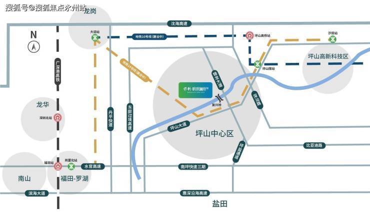 项目位于坪山区碧岭街道沙湖社区新龙路(规划龙勤路)与规划复兴路交会处南侧,项目挨着坪山河而建,一河之隔对面是佳华8万㎡建面商业体,天虹商场,项目北面是天健集团拍的地块毛坯限价4.1万㎡(对比保利明玥澜岸上涨2400元/㎡)所在地块区域原为沙湖社区“整村统筹”土地整备项目,未来沙湖“整村统筹”项目,将建成约220万㎡综合体,包含约70万㎡商业及写字楼,相当于3个深圳万象天地,近享3所学校、4所幼儿园、多个大型购物广场的教育生活服务配套设施资源。