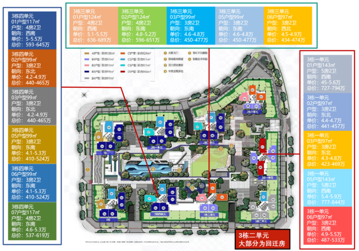 第二次预售(3栋1、2、3、4单元楼栋分布和价格)