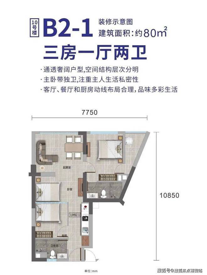 3房1厅1卫 80m²(公寓)