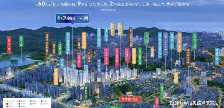 合正观澜汇三期,位于龙华区福城街道观兴南路与观兴东路交汇处西北侧,观澜作为龙华区府所在地,本案距其仅约3.5km,未来可第一时间政府红利资源倾斜。龙华12大产业区块,观澜独占9大板块,覆盖5200亿产值。龙华7大重点片区观澜占据其3,而本案处于观澜三大重点片区中心汇聚地,直属鹭湖中心城,未来将有无限的发展潜力。