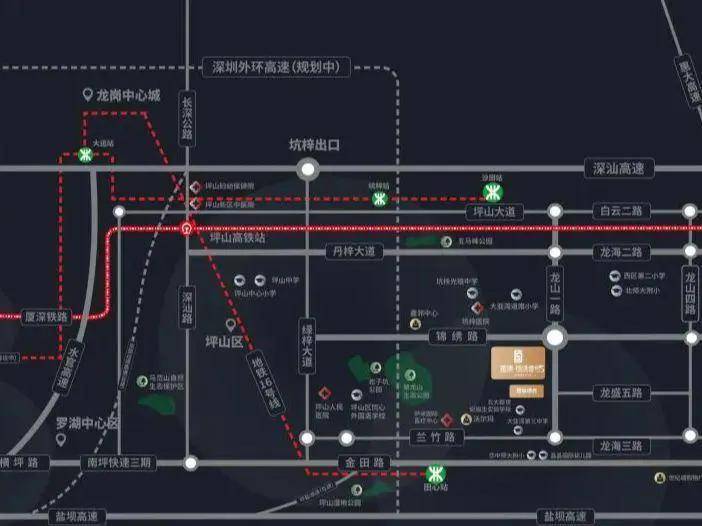 也是距离深圳目前在建的深大城际和深圳规划中的19号线地铁终点站聚龙站最近的楼盘之一,仅3.5公里!