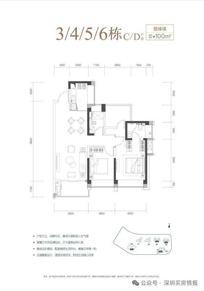 梯户比:1/2栋2梯3户,3/4/5/6栋3梯6户