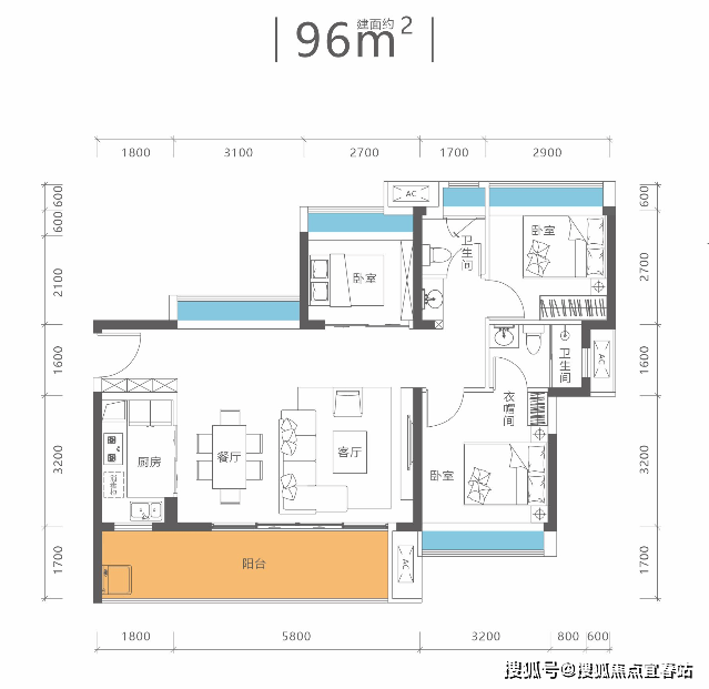 中间位:建筑总赠送210㎡,总面积达380㎡,赠送率超120%,花园面积约70㎡