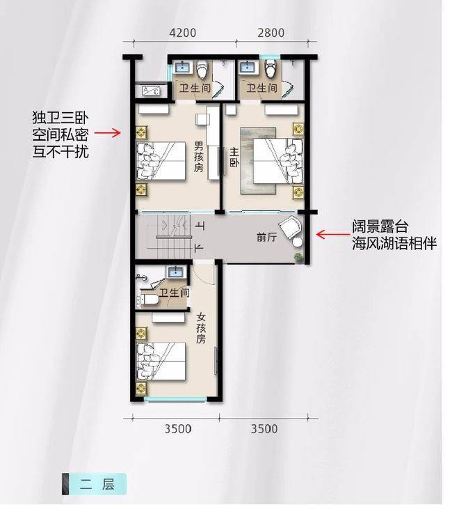 实际使用面积高达约245.2㎡,五房五卫别墅