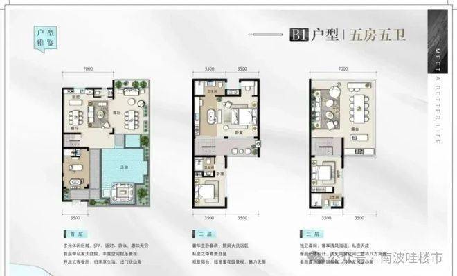 建筑面积80㎡,赠送率高达225%—400%,实际使用面积270㎡—320㎡,5房5卫别墅,也可改6房。