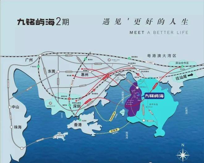 项目位于 巽寮湾旅游度假区首站,距离高速路口仅需5分钟车程,项目享有"四条高速、一个机场、一条高铁”的交通网络,另有规划中的两条海上航线,实现深莞惠1小时的交通网络, 另外今年1月惠州市政府工作报告中明确提出, 启动环绕稔平半岛高速公路建设, 届时高速联通整个稔平半岛,未来度假 将会更加方便快捷, 实现深莞惠1小时的交通网络。