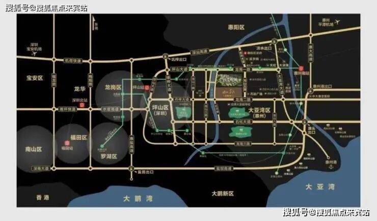 【交通】项目邻近沿海、深汕、惠大三大高速,南坪快线、高铁、地铁等交通网络畅达林立,畅享四通八达的立体交通;厦深高铁一站到深圳北,无缝对接深圳;30分钟即可拥抱极速便捷生活,成就人生通达之境。