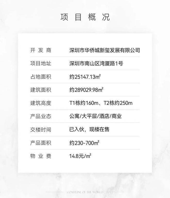 项目分为两期开发,主要由三栋高层建筑组成,其中:一期为两栋38层的商务公寓及公寓+办公综合楼,华侨城新玺售楼处电话4009099108,建筑高度约156.5米+171.1米;二期为1栋57层的商务办公及酒店综合楼,建筑高度约250米。