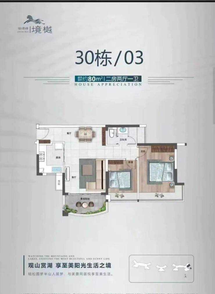 30栋:03戶型860呎/80㎡兩房一廳一衛