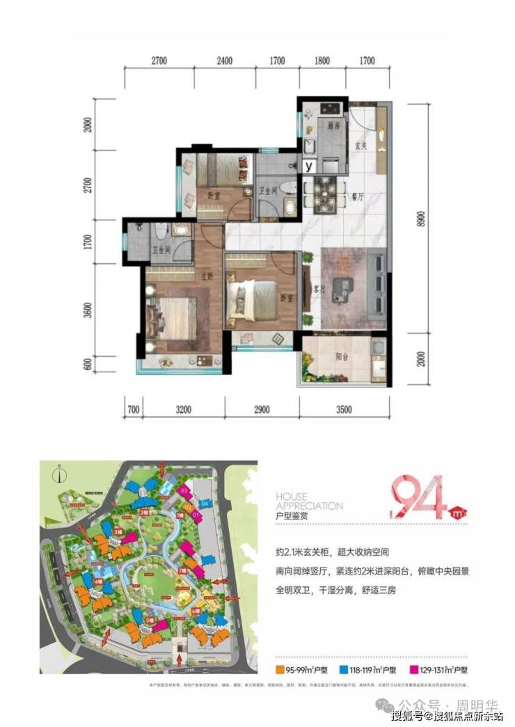 主力面积:94--119-129-131㎡3-4房