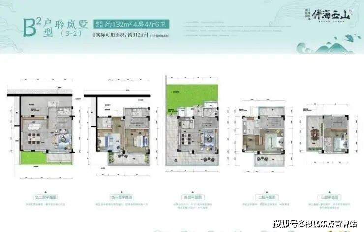 凌云墅B户型(南入户)建筑面积约148㎡,实际可用面积约231㎡(不计花园及露台)